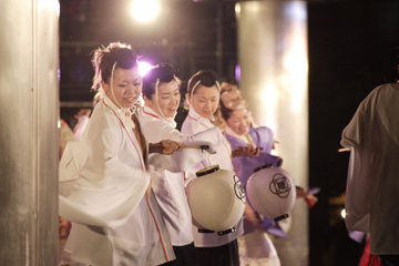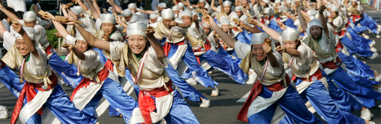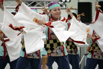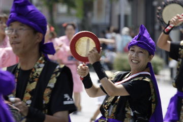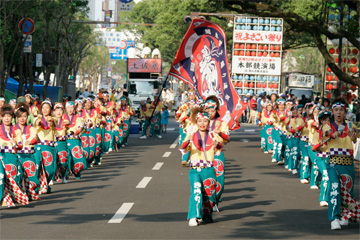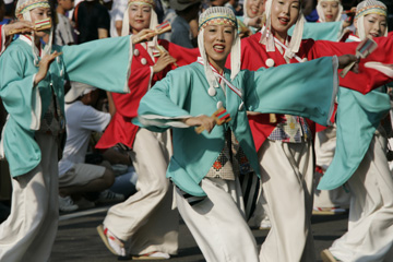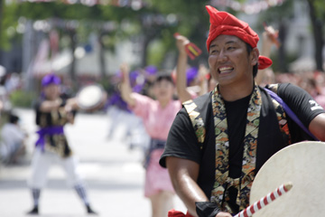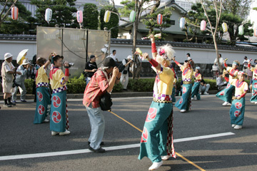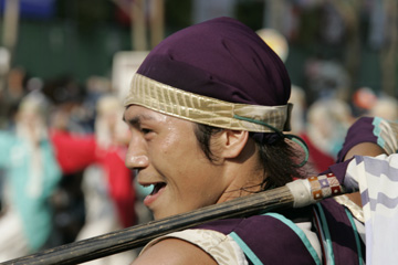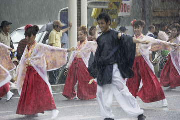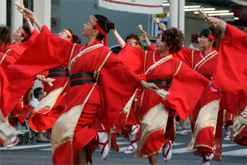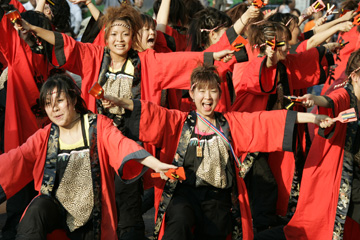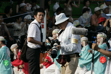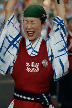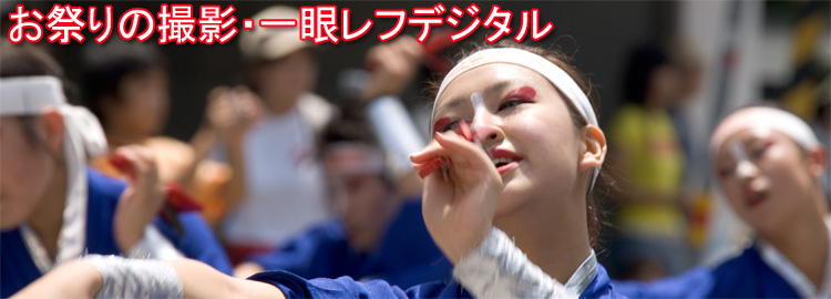 私の住んでいる高知では毎年、8月10日から12日まで「よさこい祭り」が開催されます。もともとよさこい祭りにはそれほど興味があったわけではありませんが、一眼レフデジタルカメラを買ってからはここ数年は必ず撮影に行っています。今回使用した機種は、2005年4月に新しく購入したCANON EOS-1D MARK Uと前年度に購入したレンズCANON EF28-300mm F3.5-5.6 L ISUSMという広角から望遠までカバーする手ぶれ補正付きのレンズです。